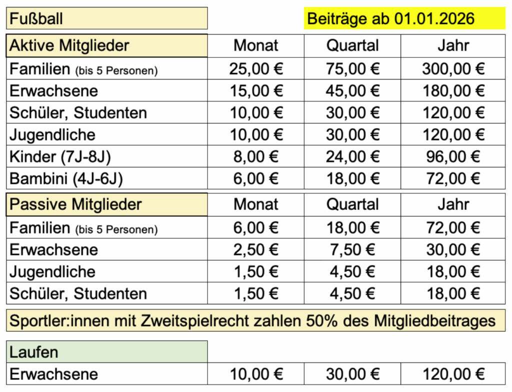 Als passives Mitglied unterstützt Ihr den Verein, seid aber keine Spieler. Mitgliedsantrag (passiv)